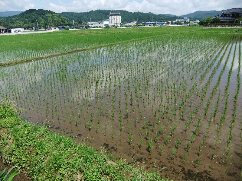 田植えが終って1ケ月程の田んぼ