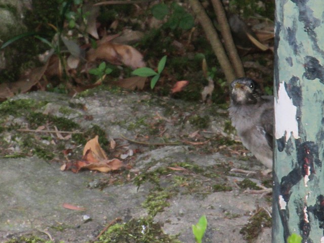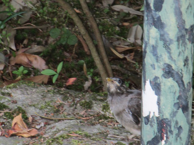 蛇がいた近くの木の根元にヒナ鳥がいるんです