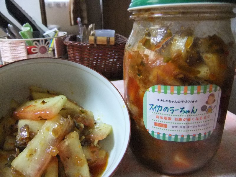 私・・・突然・・・「このスイカの皮を食べるラー油に漬けたらどう?」