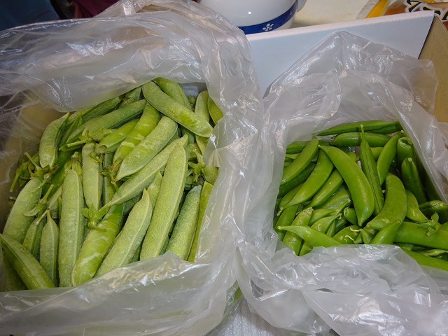 直ぐに湯がこうと皮を剝いたのが左